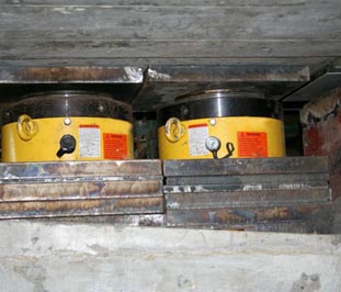 液壓千斤頂用于橋梁頂升抬高          橋梁同步頂升更換橡膠支座